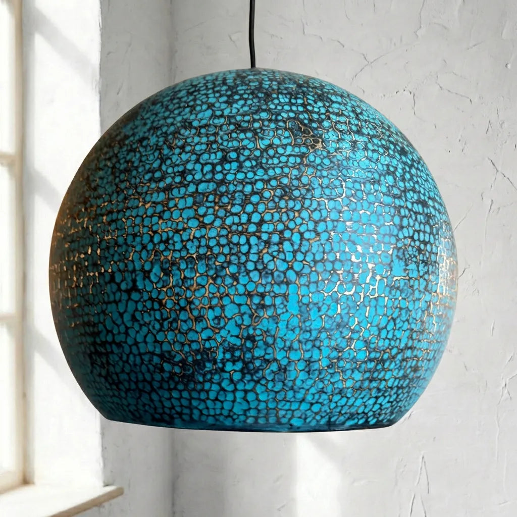 Blue Patina Brass Pendant Light , Hammered Blue Kitchen Island Lighting