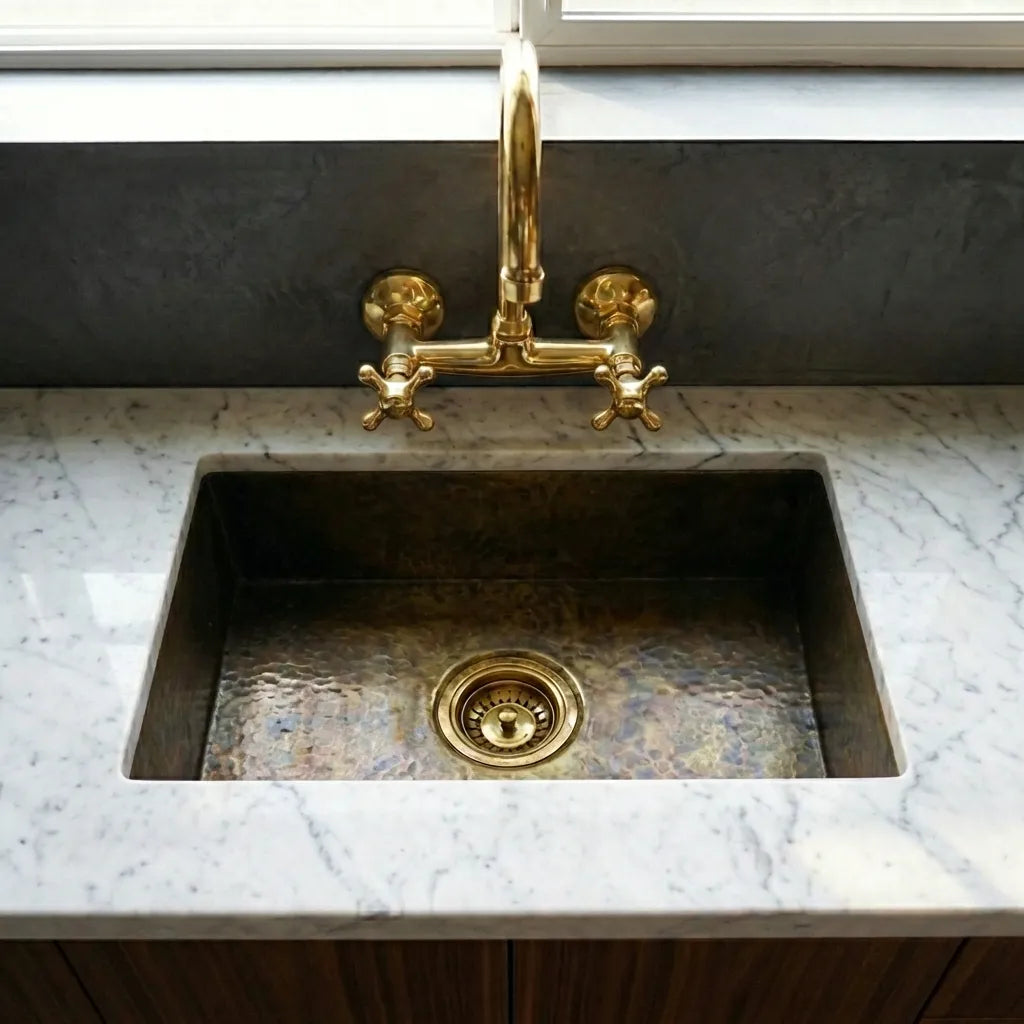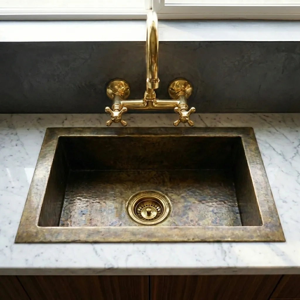 Antique Brass Undermount Single Kitchen Sink, Hammered Patina Brass Kitchen Sink