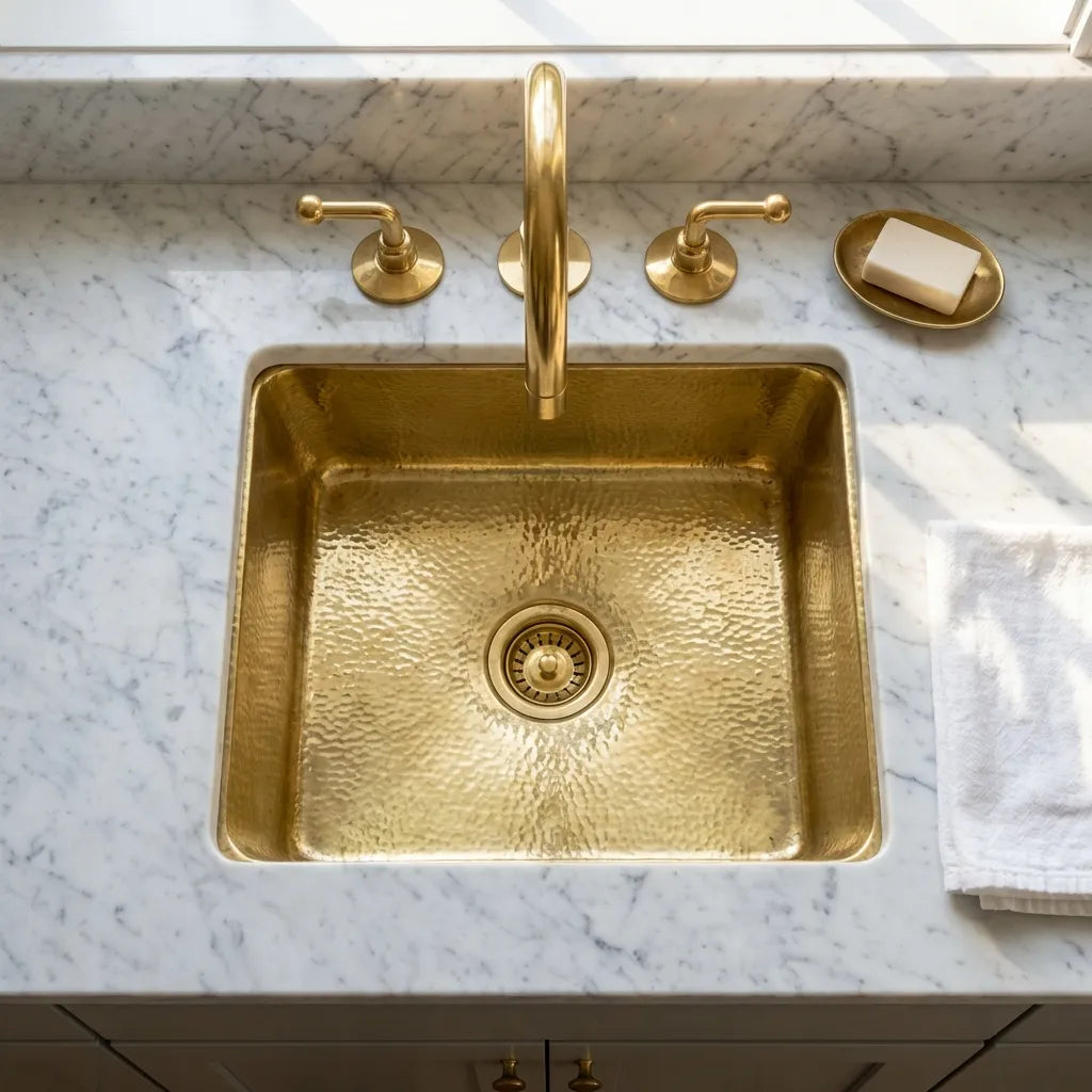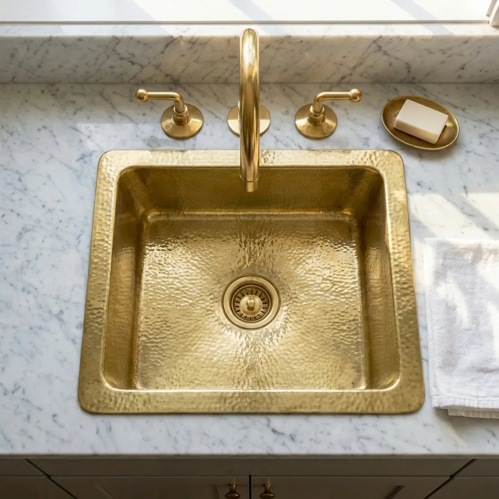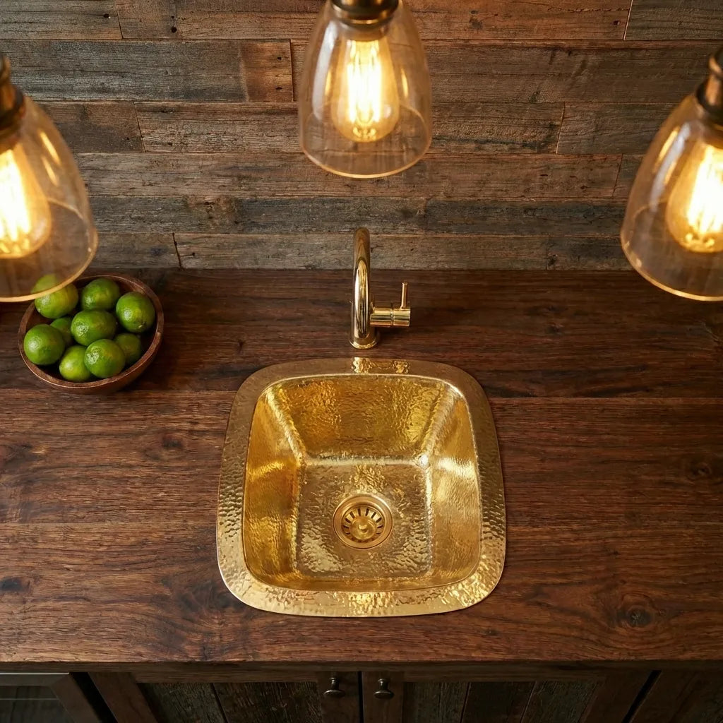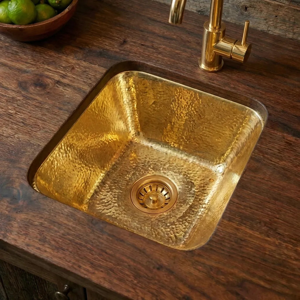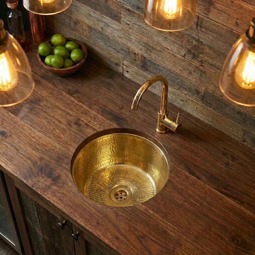 Hammered Unlacquered Brass Round Bar Sink, Round Solid Brass Sink including drain