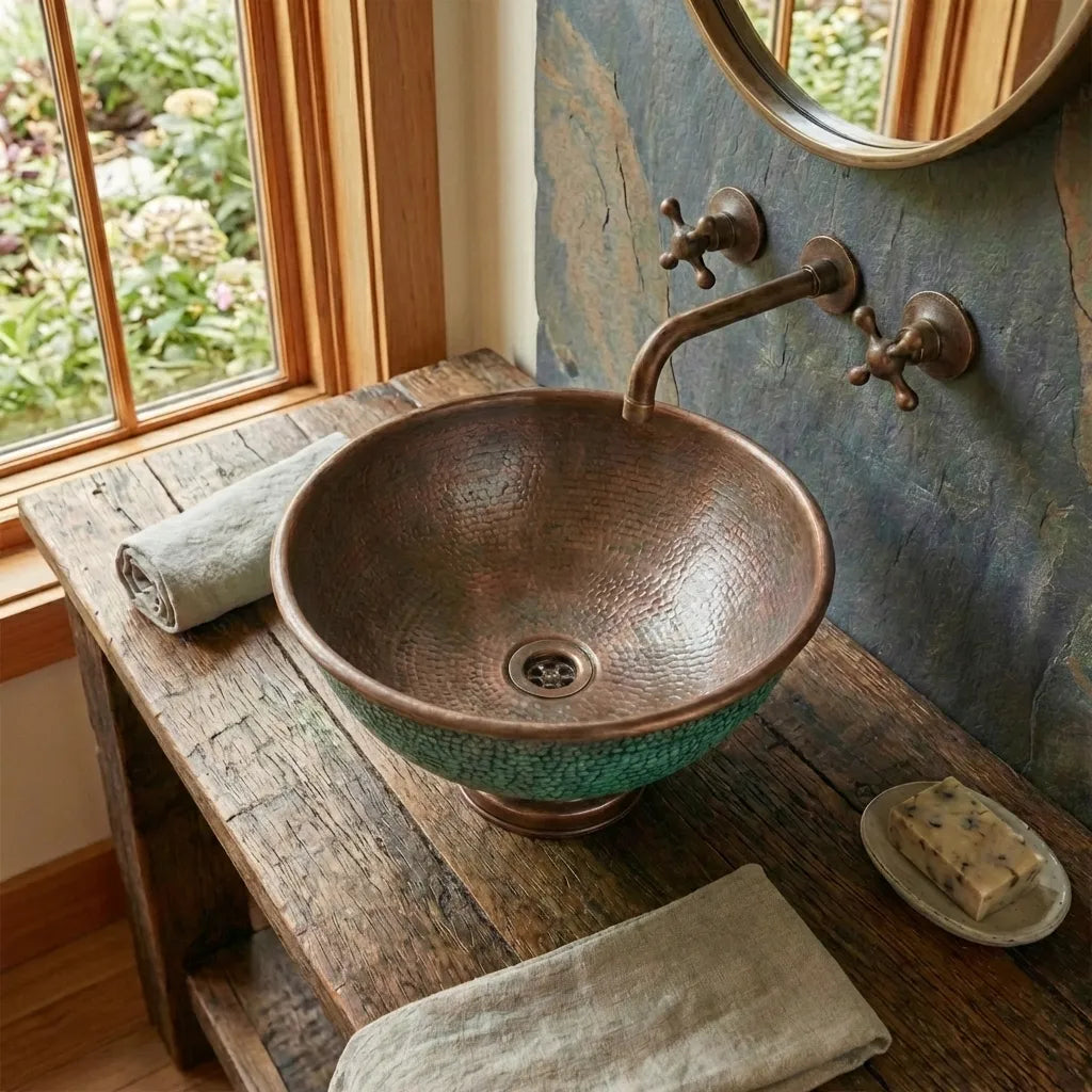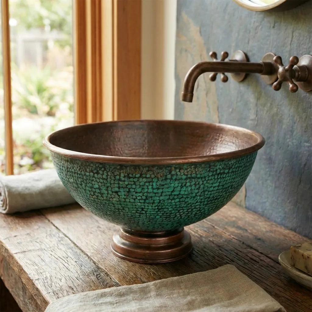 Aged Copper Vessel Sink Tub Style, Oxidized Copper Sink Bathroom