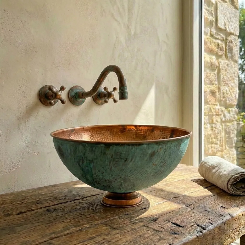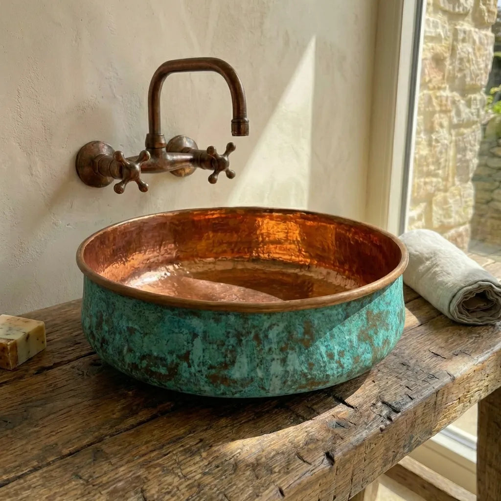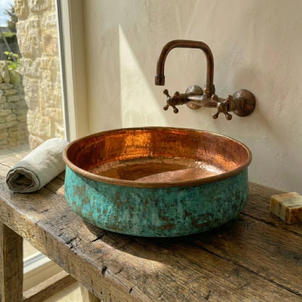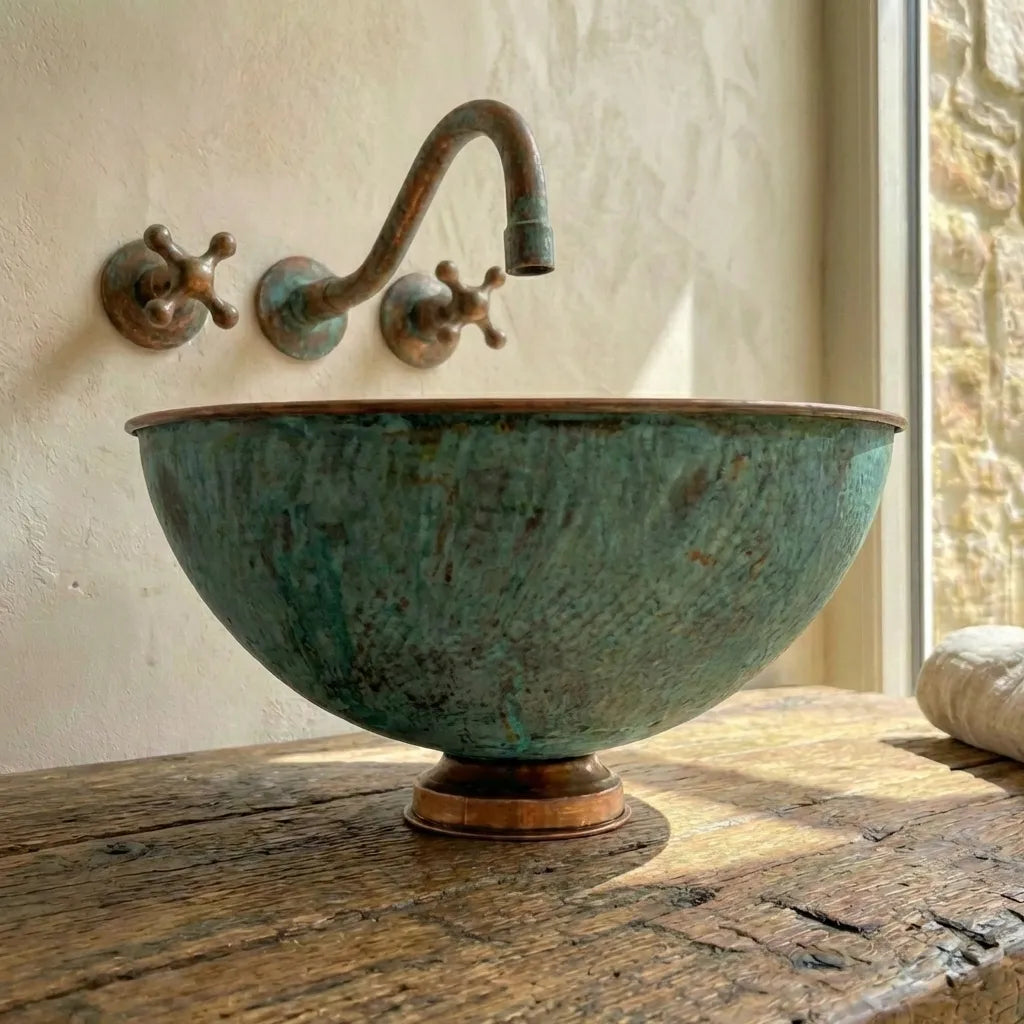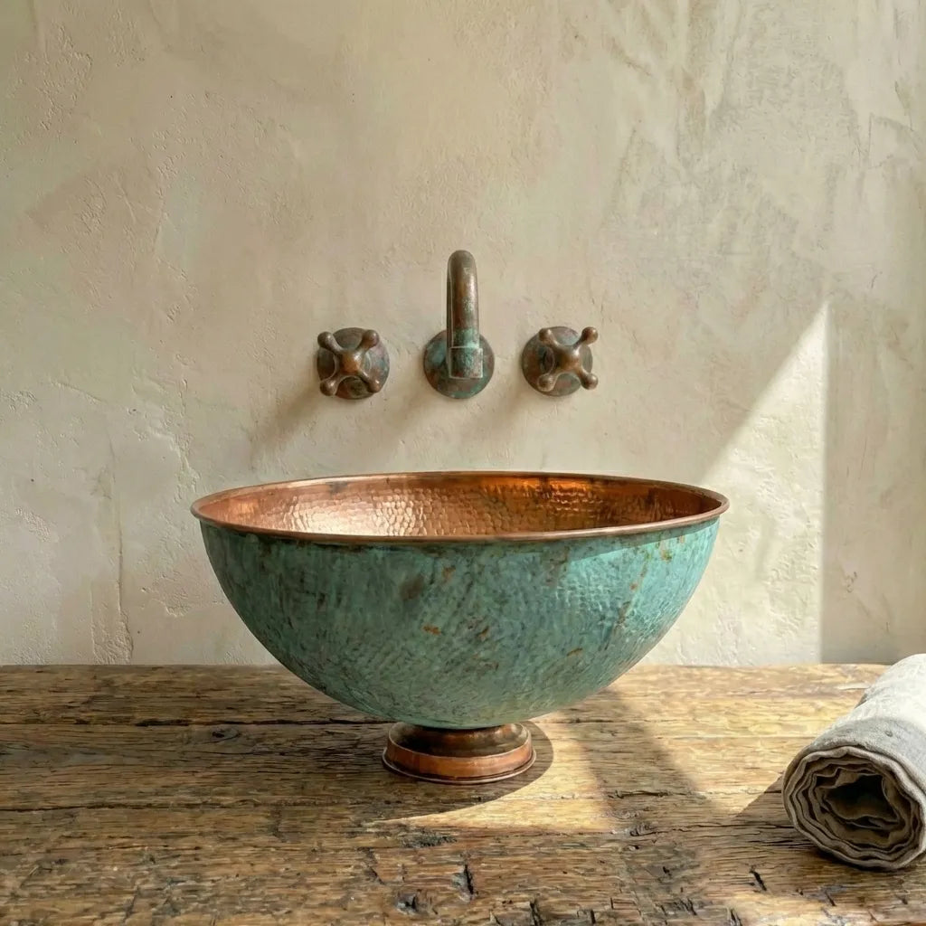 Copper Tub Style Sink – Green Patina Vessel Basin