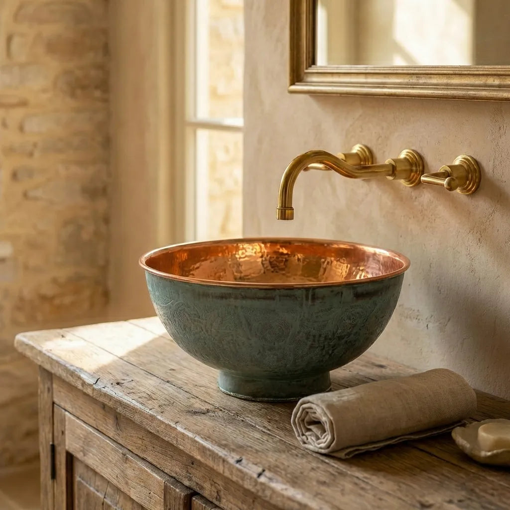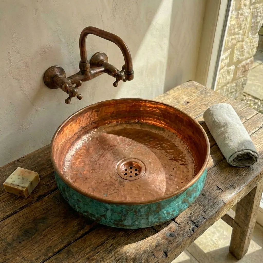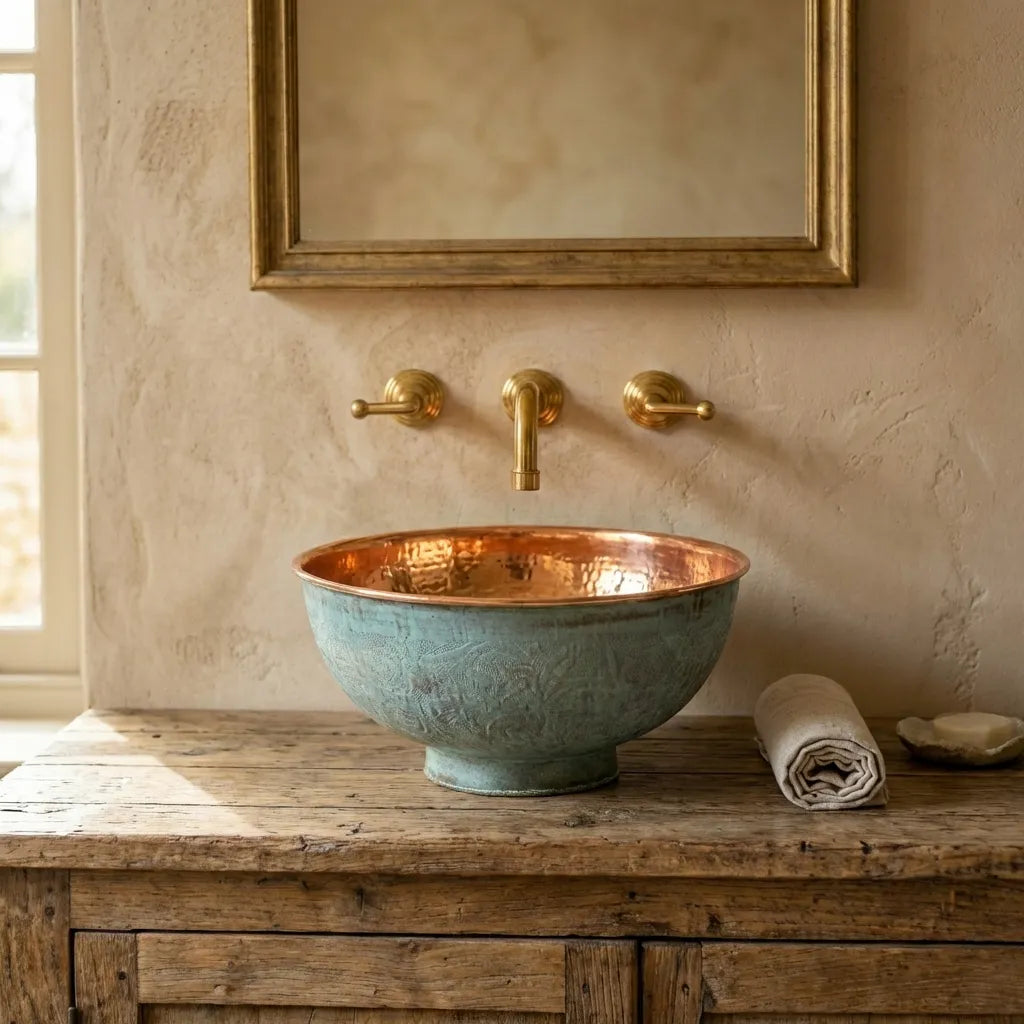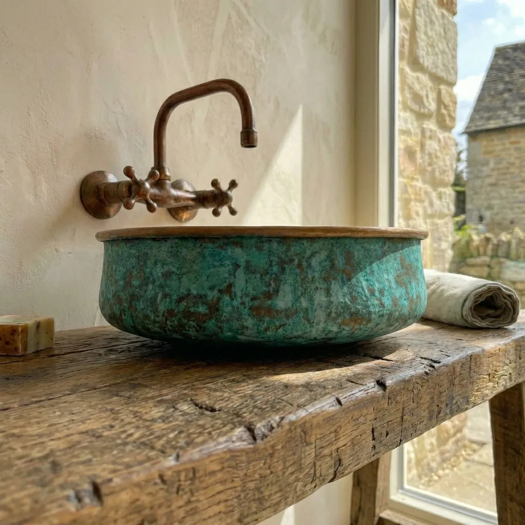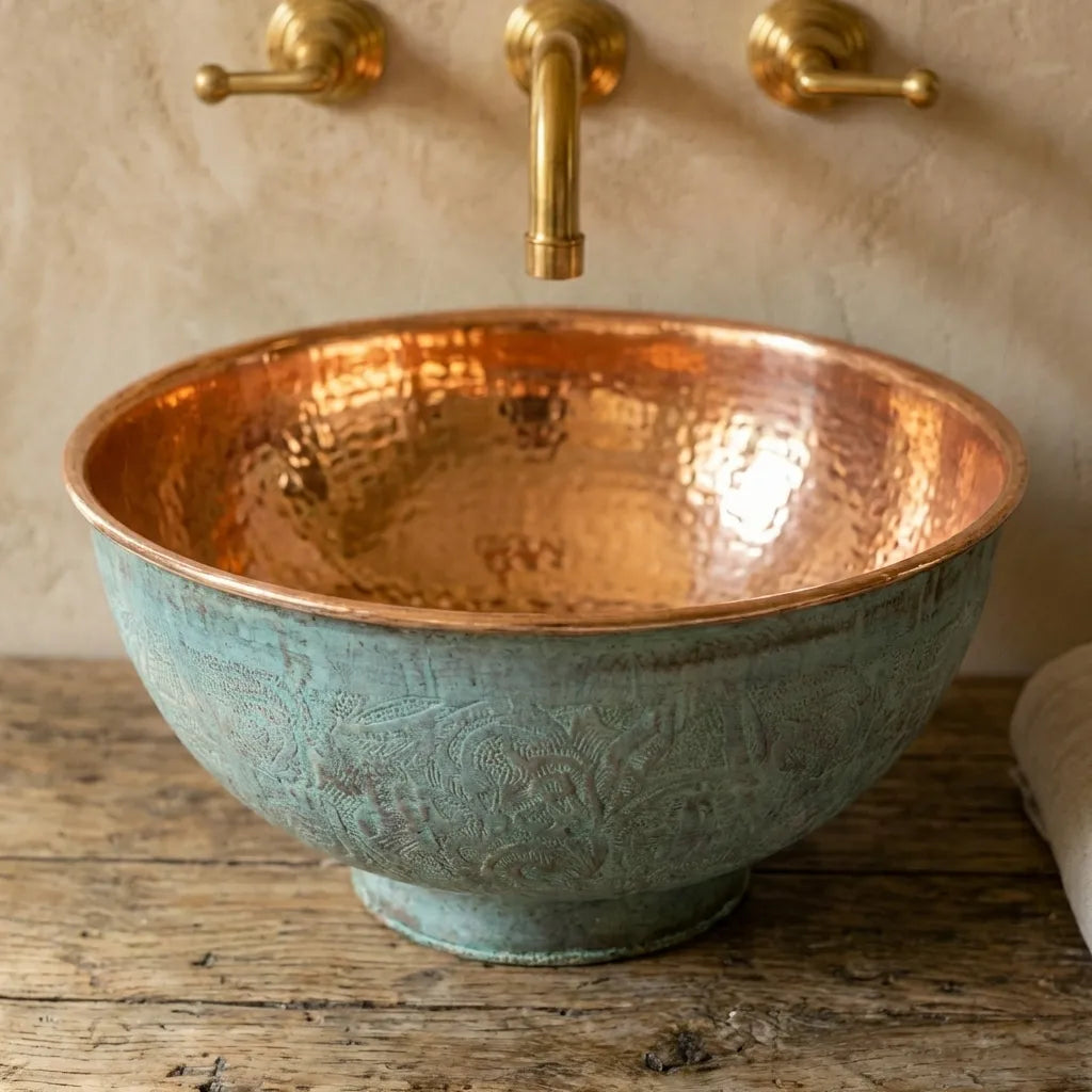 Copper Tub Style Sink – Green Patina Vessel Basin