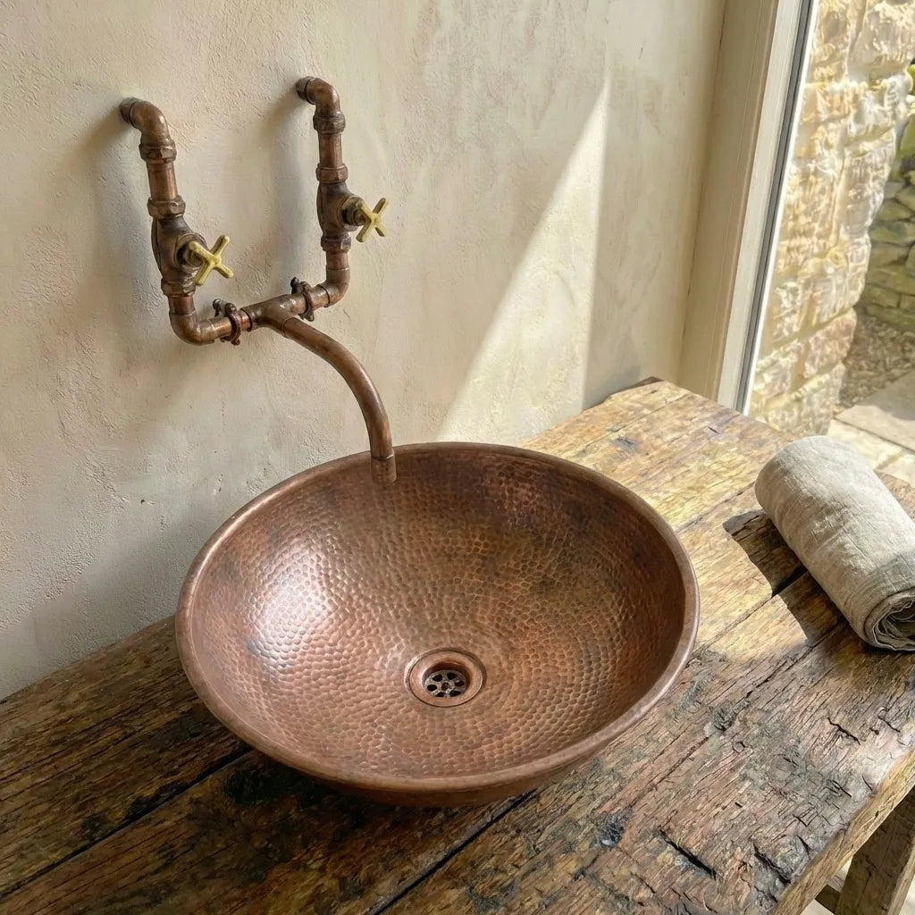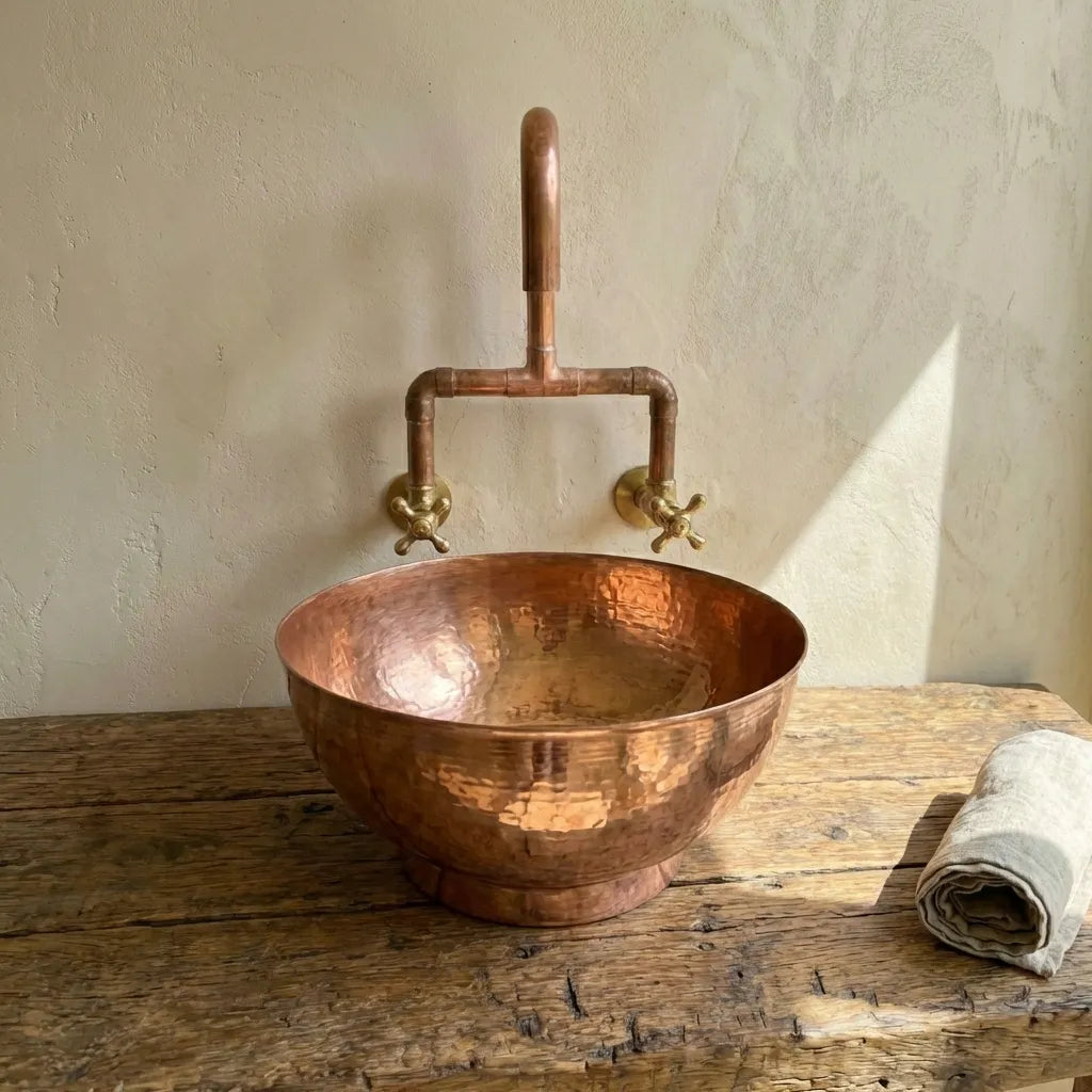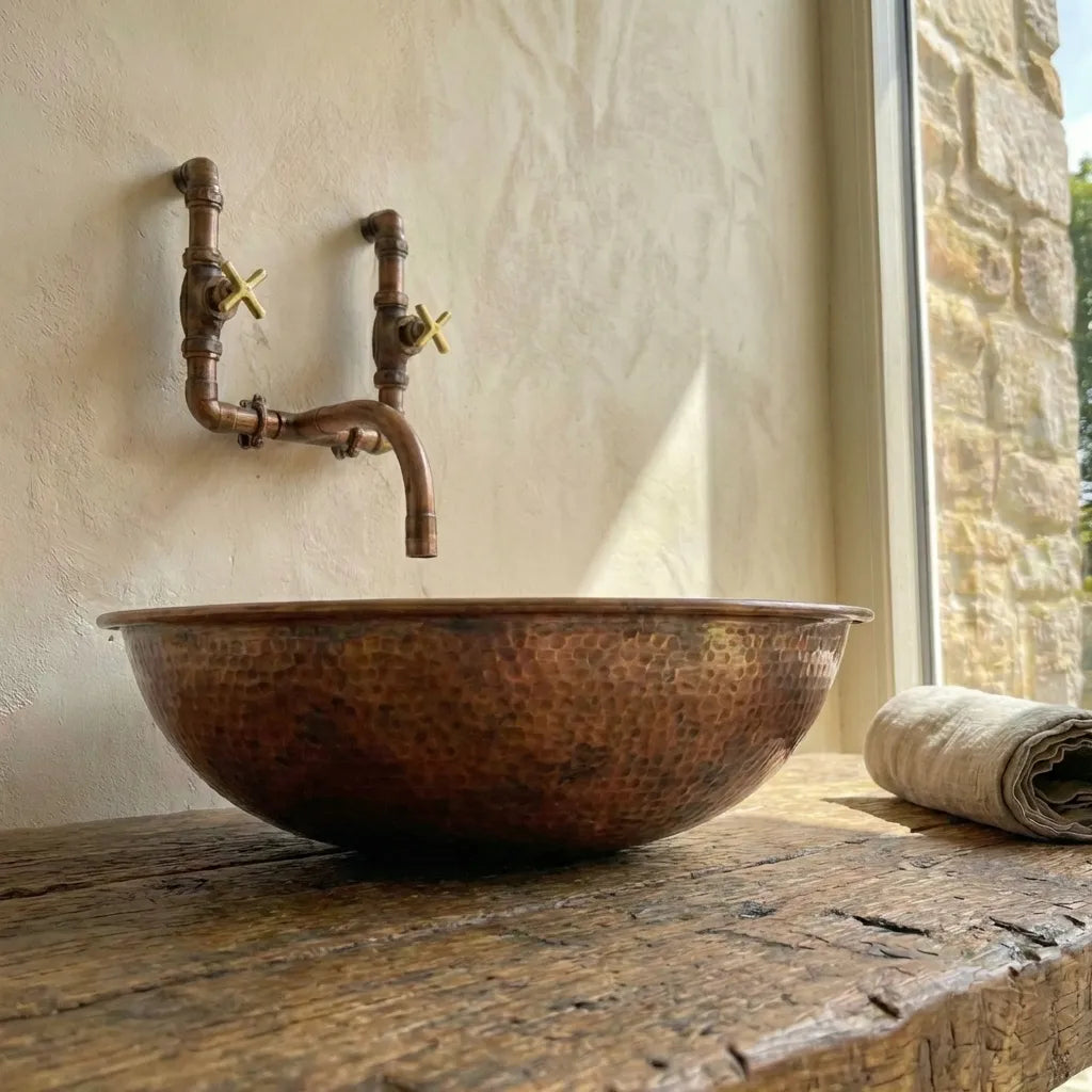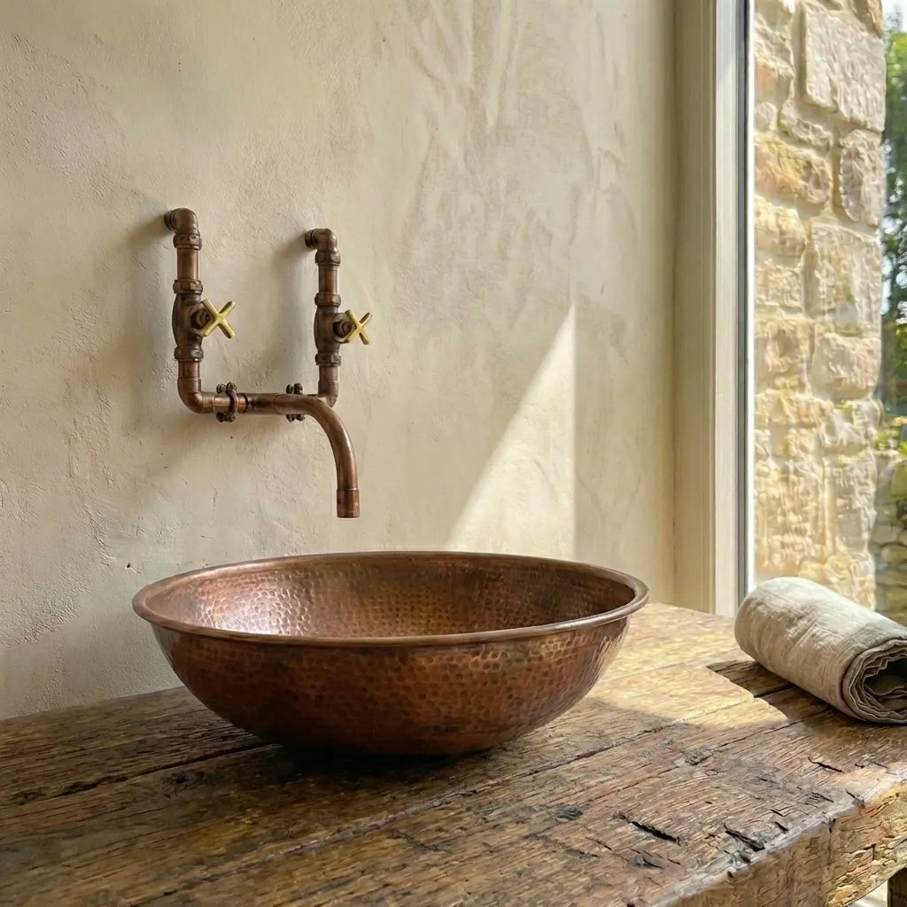 Copper Wall Mounted Sink Bathroom, Rustic Vessel Copper Sink Bathroom
