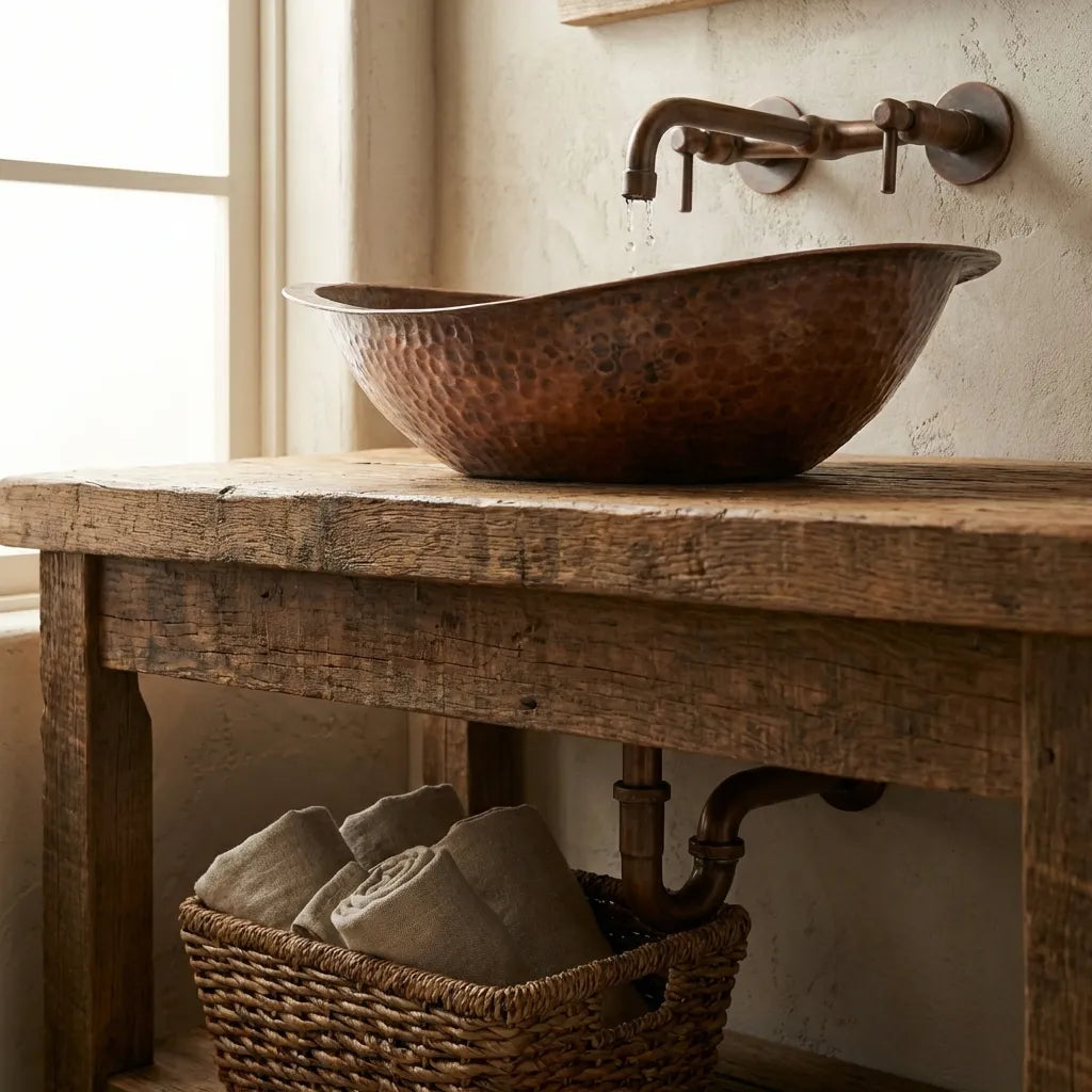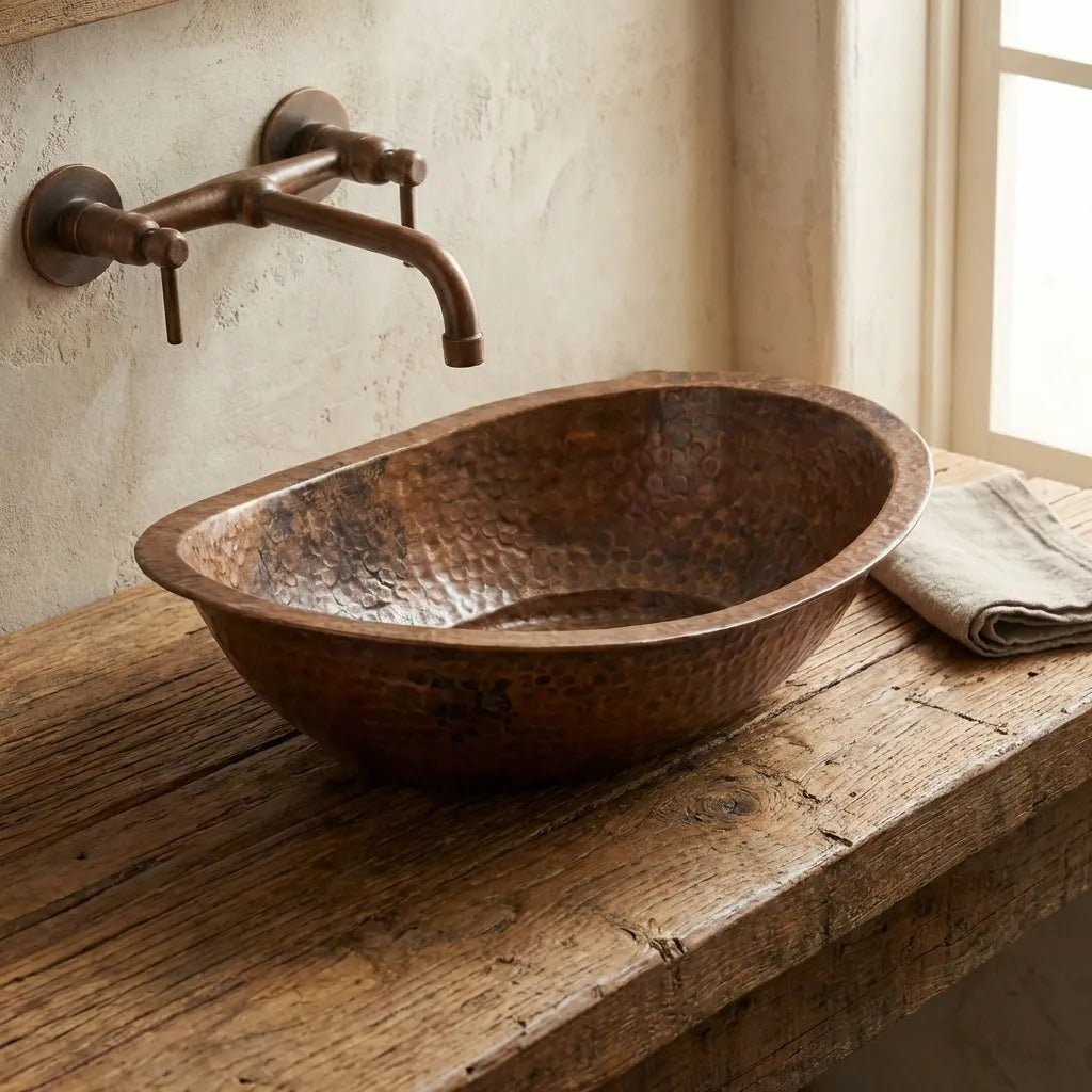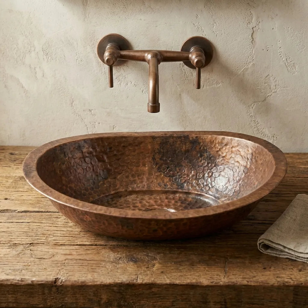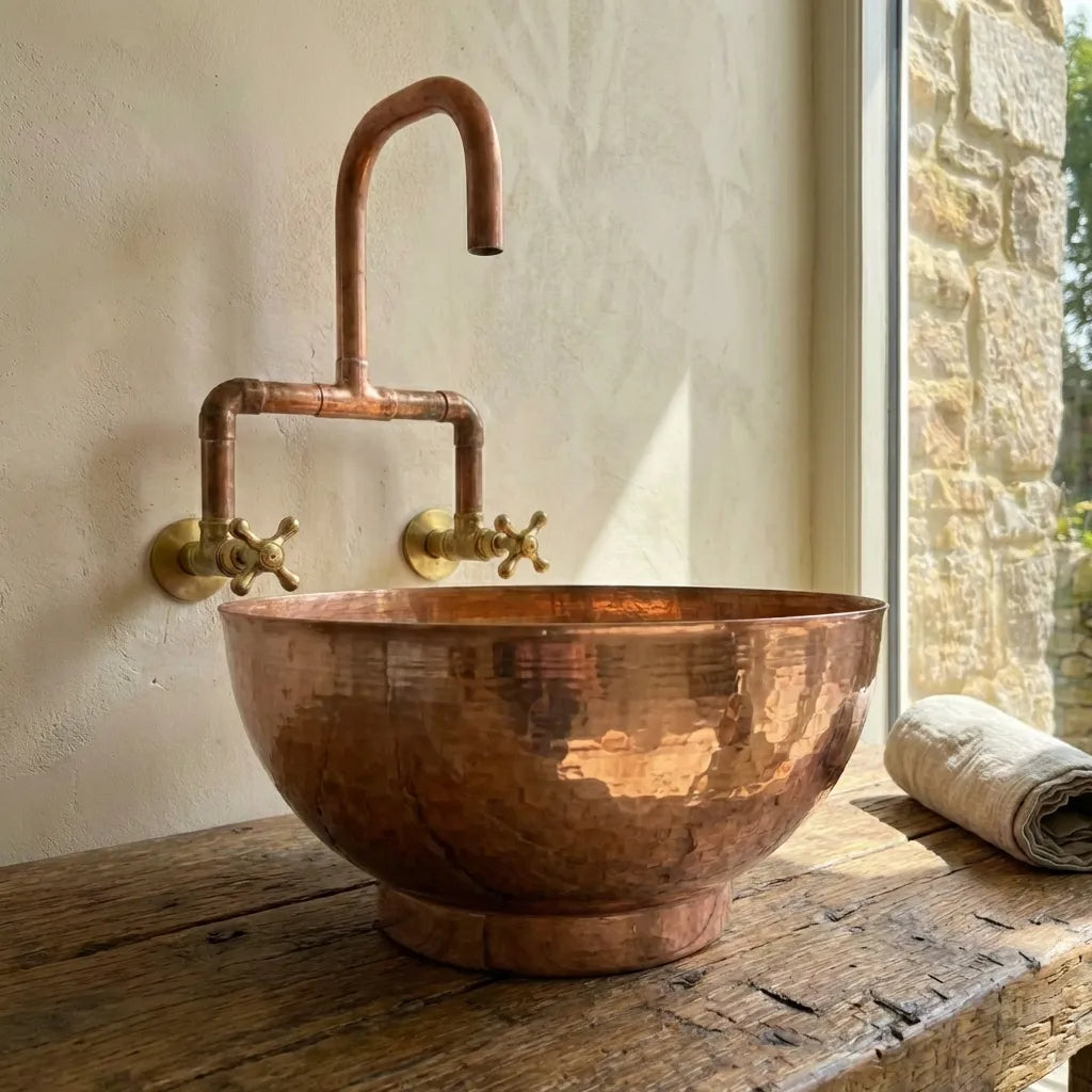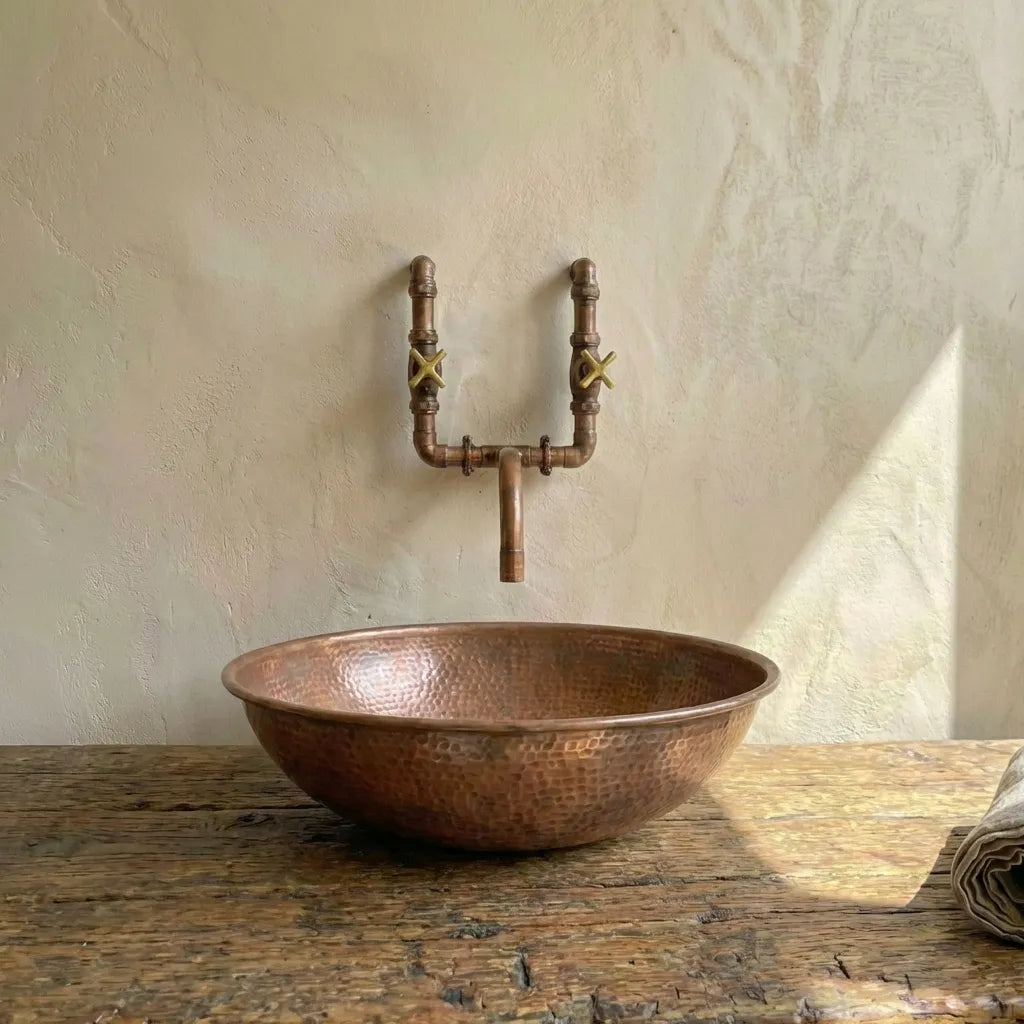 Copper Wall Mounted Sink Bathroom, Rustic Vessel Copper Sink Bathroom