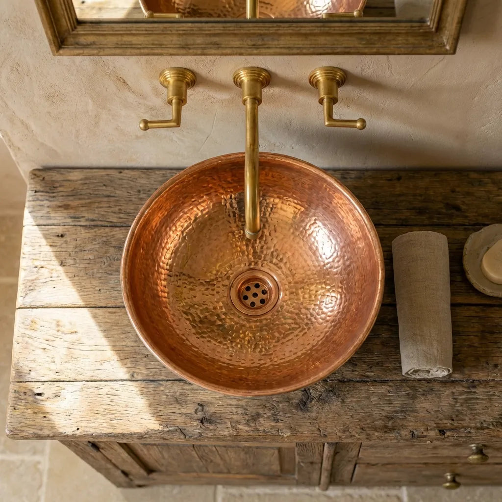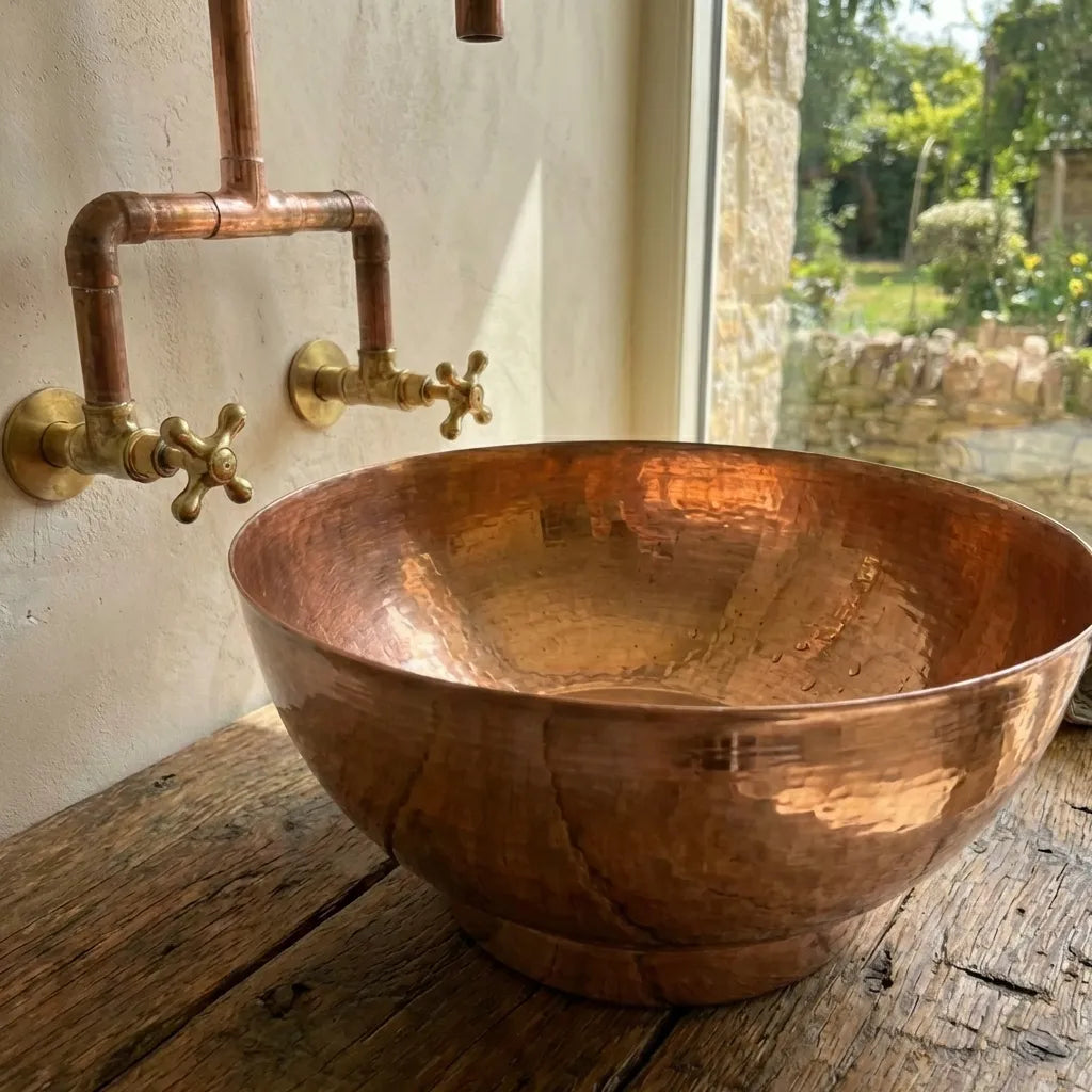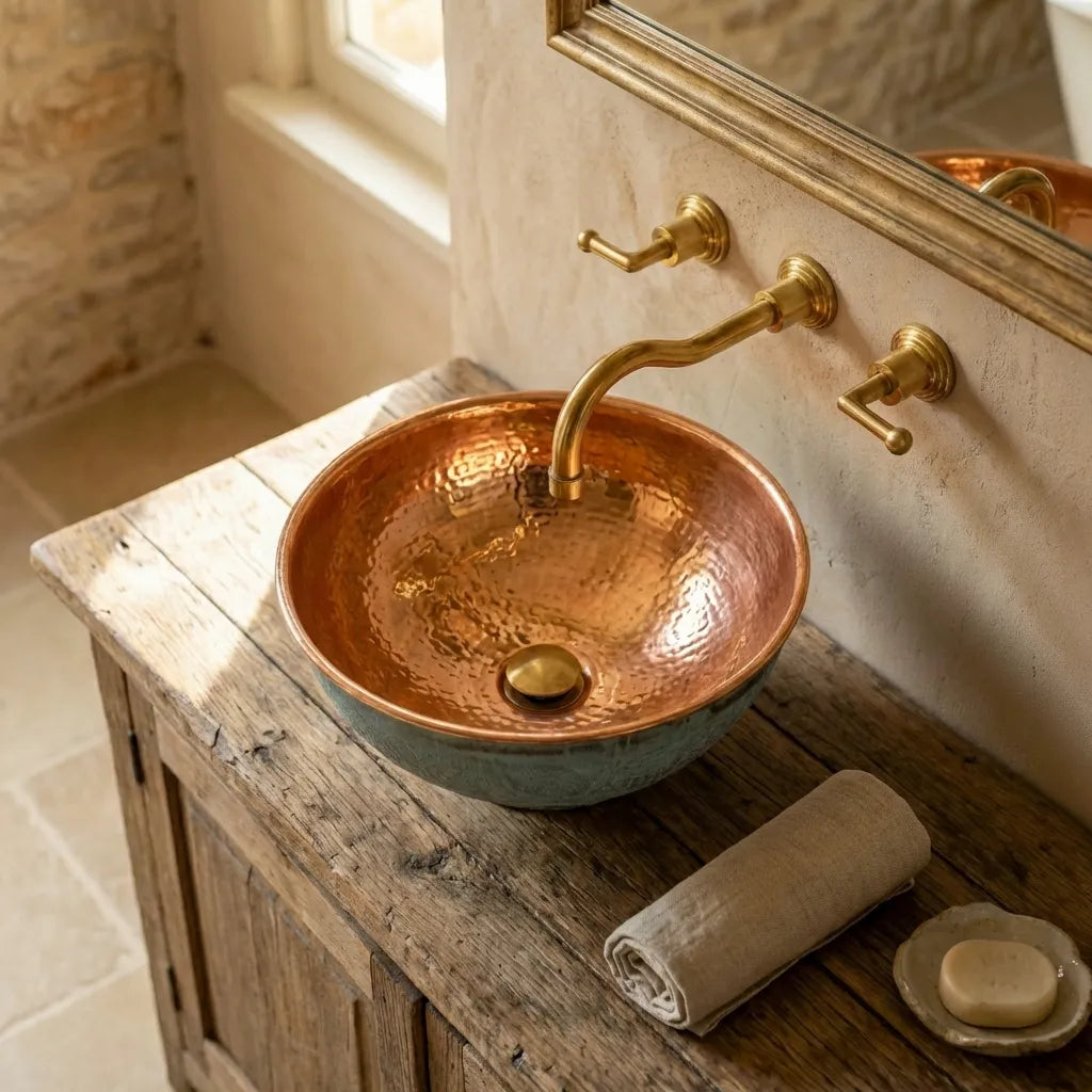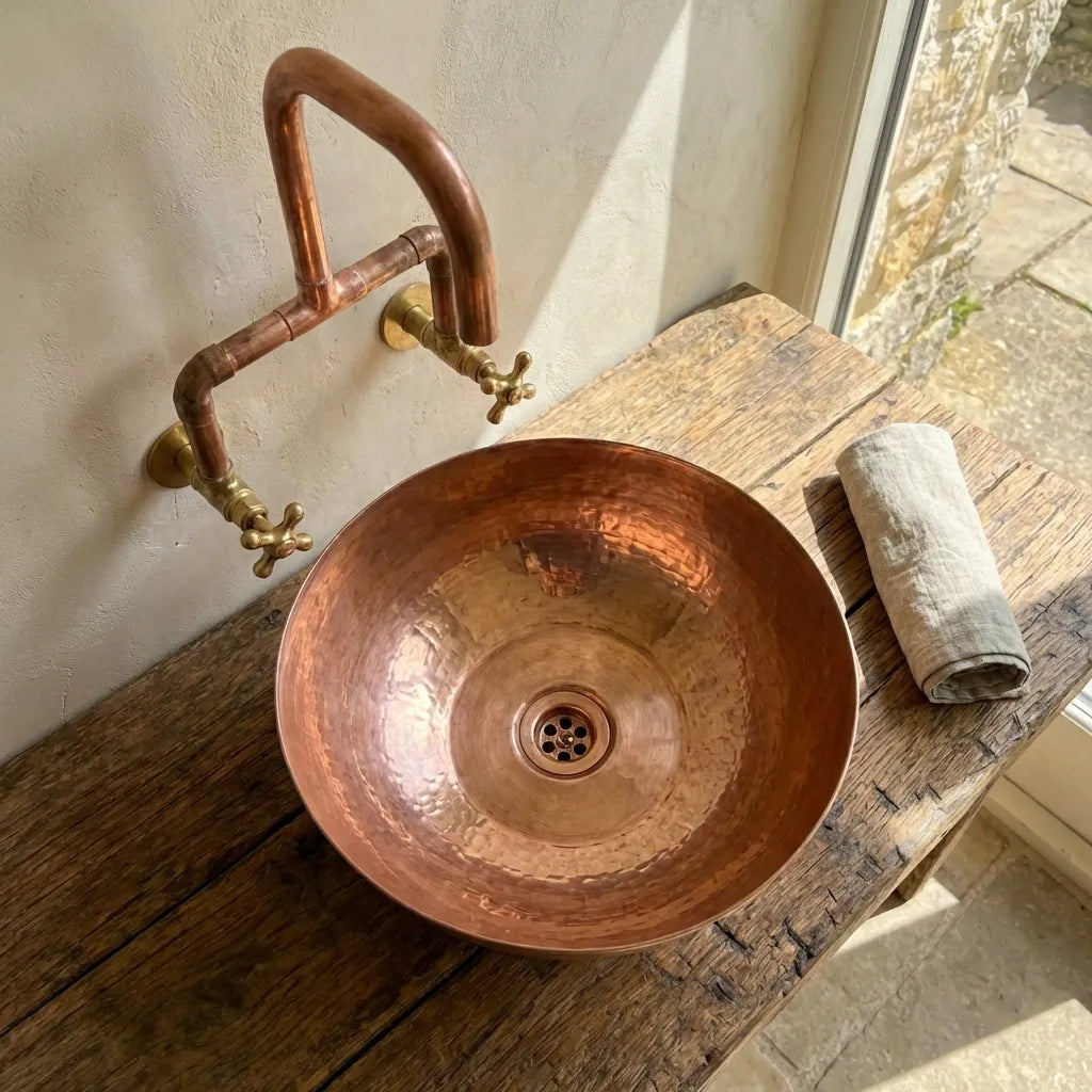 Copper Wall Mounted Sink Bathroom, Rustic Vessel Copper Sink Bathroom