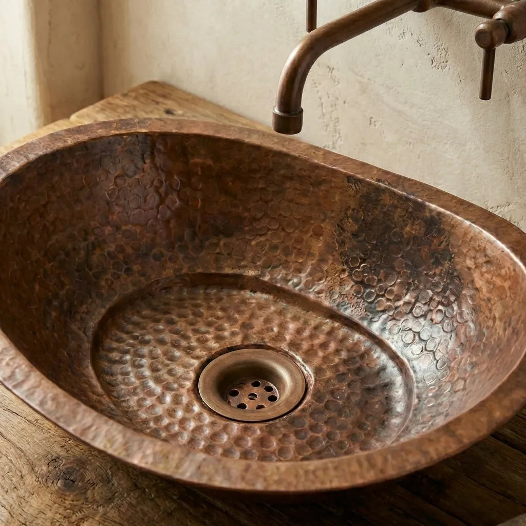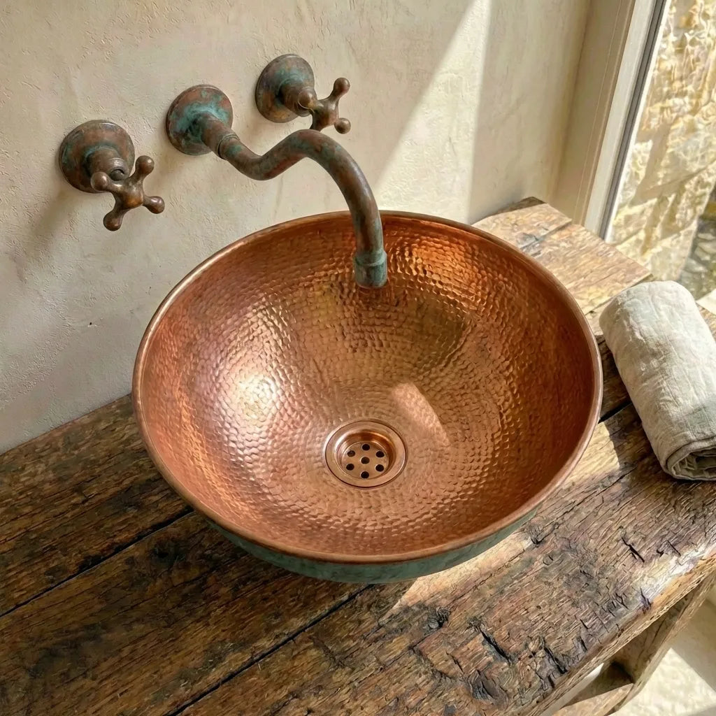 Aged Copper Vessel Sink Tub Style, Oxidized Copper Sink Bathroom