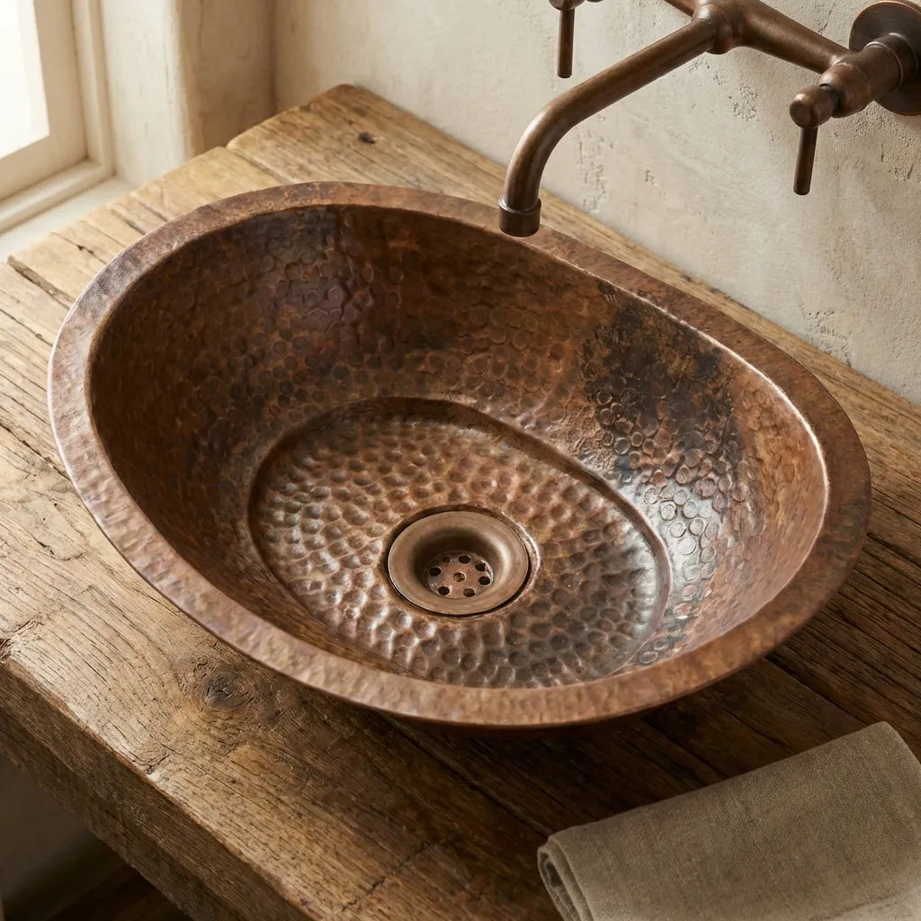 Aged Copper Vessel sink Bathroom, Hammered Oval Bathroom Sink